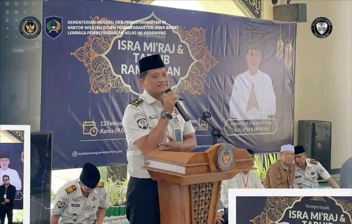 Karawang | Teraskita.web.id – Lembaga Pemasyarakatan Kelas IIA Karawang menggelar peringatan Isra Mikraj Nabi Muhammad SAW yang dirangkaikan dengan Tarhib Ramadan di Masjid Nurul Iman, Kamis (12/2/2026). Kegiatan tersebut menjadi momentum pembinaan spiritual bagi warga binaan dalam menyambut bulan suci Ramadan.