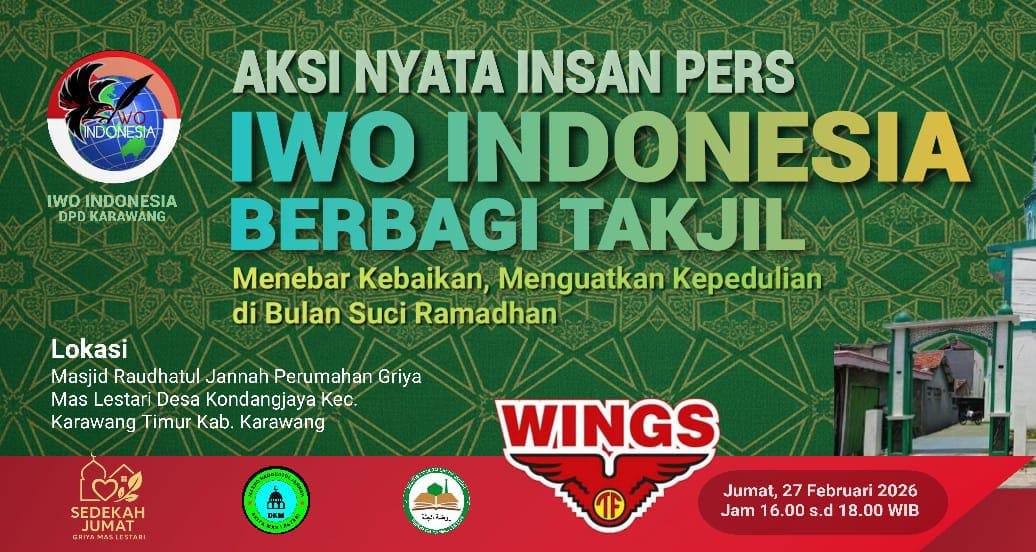 Karawang | Teraskita.web.id — Dalam rangka meningkatkan kepedulian sosial di bulan suci Ramadhan, Ikatan Wartawan Online (IWO) Indonesia Dewan Pimpinan Daerah (DPD) Kabupaten Karawang akan menggelar kegiatan Aksi Nyata Insan Pers Berbagi Takjil untuk Masyarakat.