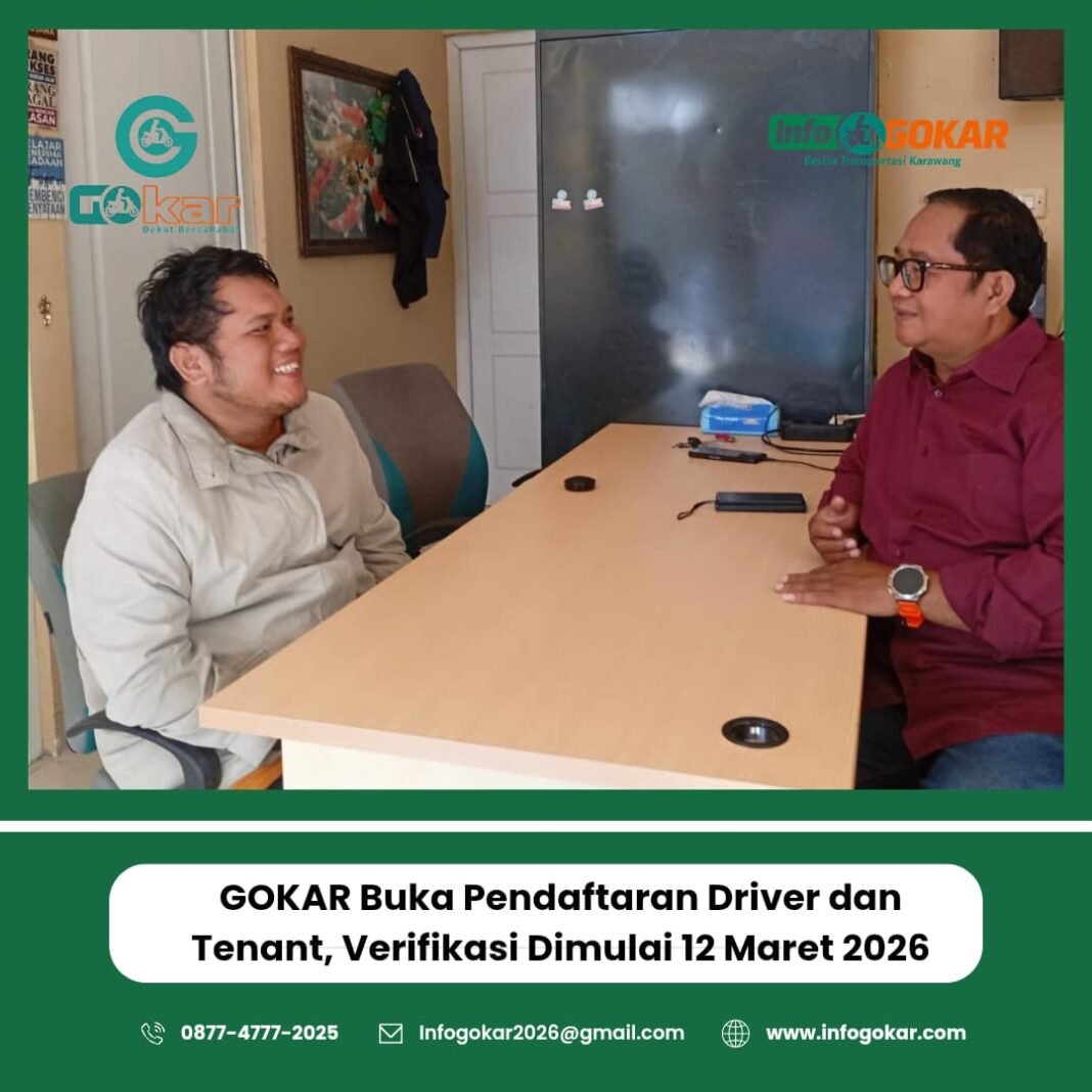 Karawang | Teraskita.web.id – Platform transportasi berbasis aplikasi GOKAR (Gerakan Online Kendaraan Angkutan Rakyat) membuka pendaftaran bagi masyarakat yang ingin bergabung sebagai mitra driver maupun tenant usaha sejak awal Maret 2026.